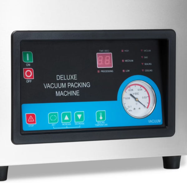 Grâce à son panneau de contrôle digital, vous maîtrisez tout : le temps de vide, le temps de soudure, la température et le refroidissement. La puissante pompe de 10 m³/h et la barre de soudure large de 8 mm garantissent une conservation parfaite et des sacs hermétiques à 100%. C'est le modèle d'entrée de gamme idéal pour les restaurants, les traiteurs ou les particuliers exigeants passant au niveau supérieur.